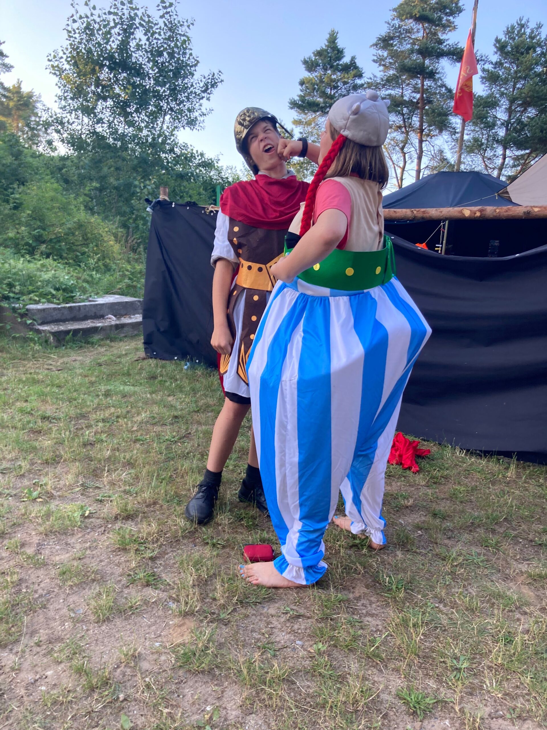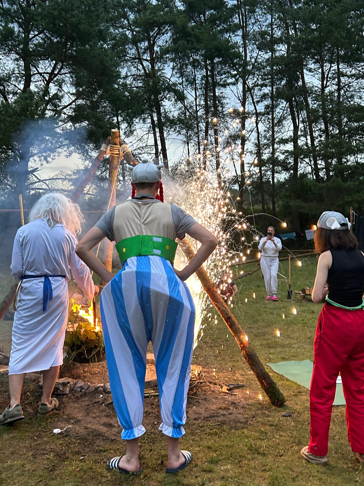 Wochen voller Sommer, Sonne und Erlebnisse liegen hinter Pfadfinder*innen, Entdecker-Scouts und Wölflingen gleichermaßen. Gemeinsam haben wir uns am 23. Juni 2024 nach dem Aussendungsgottesdienst in der Johanniskirche in den Zug gesetzt, uns auf der Fahrt gegenseitig kennengelernt und sind, ein bisschen aufgeregt, auf dem Lagerplatz angekommen. Die ersten Tage waren natürlich sehr spannend, weil in dieser Zeit die Lagersippen zusammenwuchsen und sich richtige Freundschaften bildeten. Als die Römer auftauchten, ging die Action natürlich erst so richtig los: während die Wölflinge sich auf die Suche nach den Zaubertrankzutaten machten, verwandelten sich die Pfadfinder*innen in richtige Gallier und forderten sich gegenseitig heraus, den Schönsten unter ihnen zu finden. Außerdem wählten die beiden gegnerischen Dörfer jeweils einen Häuptling und traten sich in der Olympiade mit Speerwerfen, Frisbee-Weitwurf, Turmbau, Seilspringen und Kanu-Wettrennen als Höhepunkt entgegen. Leider musste unser altehrwürdiger Druide einen schweren (Hinkelstein-)Schlag einstecken, was es den Römern sehr leicht machte, ihn zu entführen. Um nicht auf den legendären Zaubertrank verzichten zu müssen, begann jetzt der Streit um den Druiden, bei dem die beiden Dörfer den Druiden zurückerobern mussten. Besonders cool war auch das Zubereiten von Kartoffeln, Fisch und Zucchini in Erdöfen, die wir selbst bauten, befeuerten und wieder ausbuddelten, obwohl es regnete. Der Regen machte uns im Verlauf des Lagers doch sehr zu schaffen: nachdem sämtliche Kothen unterspült worden waren, begann das große Trocknen. Am Ende ist aber alles gut geworden, wir hatten einen tollen Gottesdienst und bei der Begegnung mit der Feuerwehr aus Lohmen sind nur diejenigen nass geworden, die das auch wollten. Ein weiteres Highlight war der Hajk, der teilweise im Kanu stattfand. Den herausfordernden Abschnitt im Kanal zwischen dem Garder und dem Woseriner See meisterten fast alle Gruppen und mit Bravour standen alle Teilnehmer die Nacht durch. Insgesamt hat das Sommerlager viel Spaß gemacht, sowohl für die Organisatoren als auch für die Teilnehmer, auch wenn es zwischenzeitlich sicher nicht ganz einfach war. Aber wir haben alle viel gelernt und haben viele neue Bekanntschaften geschlossen.